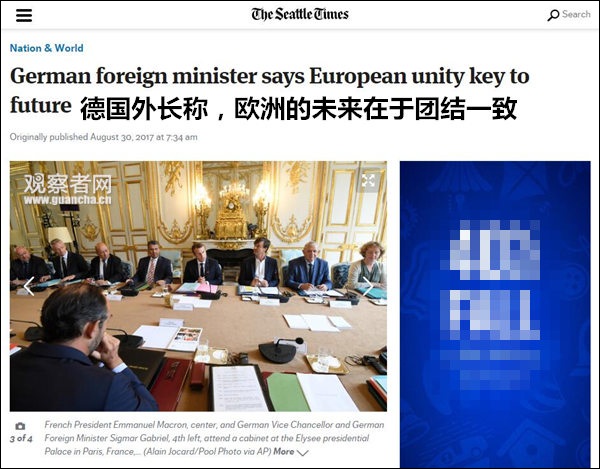 據(jù)美國《西雅圖時報》30日報道,德國外長加布里爾在巴黎出席一次駐外使節(jié)會議上,呼吁歐洲應當團結(jié)一致,制定出統(tǒng)一的對華戰(zhàn)略,也敦促中國不要試圖分化歐洲,而應遵守“一個歐洲”原則。