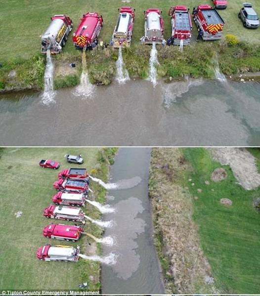印第安納州環(huán)保當局表示,該工廠的牛奶不會對附近的人類或野生動物構(gòu)成危險,只是得盡快處理以免事情進一步擴大。事故發(fā)生后,有關人員將干草包投放到河中以防止牛奶進一步擴散,而清理公司則從河水中清除了約1.4萬加侖(約53噸)的水和牛奶混合物。