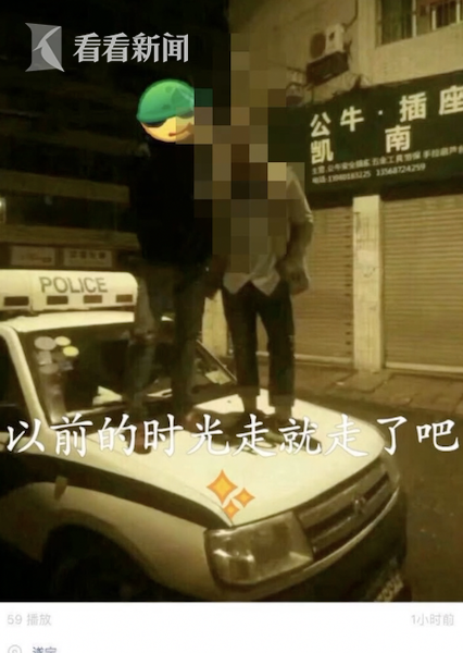 這張照片是兩名男子相互依靠,站在警車引擎蓋上所拍攝的,這張圖片上還配上了一句“以前的時(shí)光走就走了吧”, 警方了解到,這張照片是在一個(gè)名叫“快手”的社交軟件上進(jìn)行發(fā)布的,而這個(gè)軟件在登記注冊(cè)的時(shí)候需要進(jìn)行實(shí)名認(rèn)證。