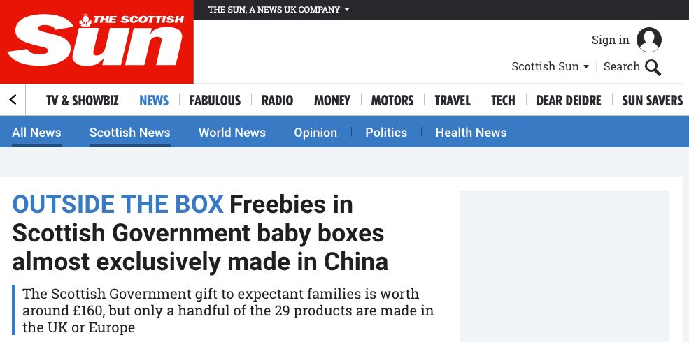現(xiàn)在看來(lái)這個(gè)想法要被改變了!連英國(guó)蘇格蘭政府贈(zèng)予新生兒家庭的禮物,大部分都來(lái)自中國(guó)制造。