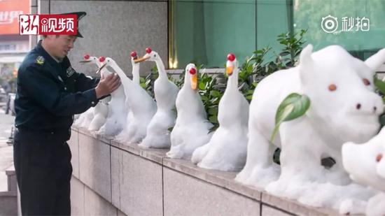 原標(biāo)題:下雪后,這位保安堆了個動物園!萌得心肝兒都化了…