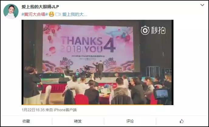2017年1月12號上傳的一段“熊貓明歷險記劇組”新年晚會視頻里,《黃河大合唱》被篡改成了“年終獎”版,歌詞低俗。