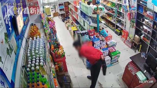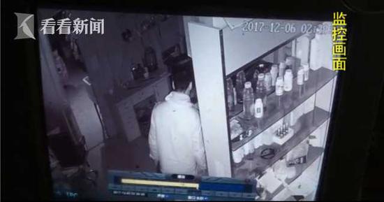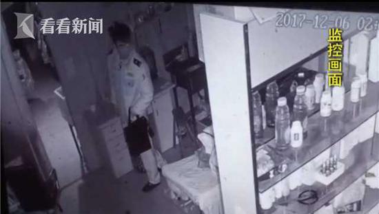 這是2017年12月6號,這家煙酒店里的監(jiān)控視頻,這名身著警服的男子在店里四處轉(zhuǎn)悠,事后店主發(fā)現(xiàn)錢少了。