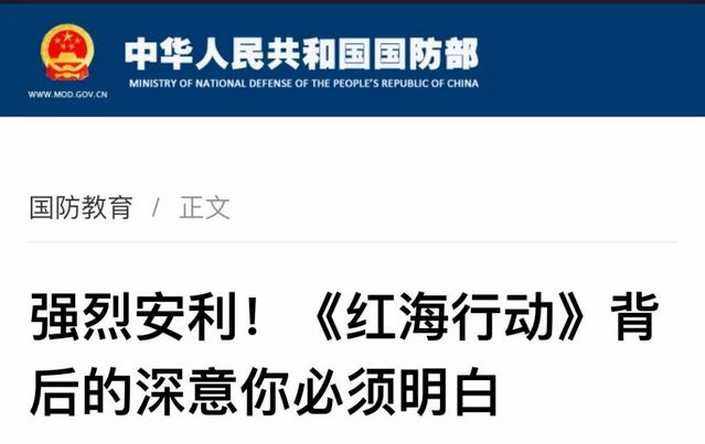 就連中國國防部也為它強(qiáng)勢“打call”,在其官網(wǎng)轉(zhuǎn)發(fā)一篇名為《強(qiáng)烈安利!〈紅海行動〉背后的深意你必須明白》的文章。