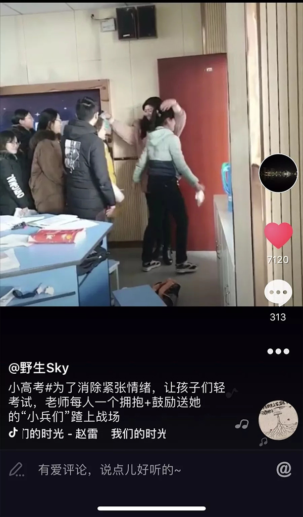 近日,在某視頻社交媒體上,一段老師在教室門口挨個擁抱學生的短視頻獲得數(shù)萬點贊。有網(wǎng)友表示,“雖然是簡單的擁抱,卻很溫暖,為老師點贊”。