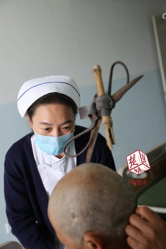 4月4日清晨,襄陽市樊城區(qū)太平店鎮(zhèn)57歲的農村婦女沈某,在采摘香椿嫩芽時,綁在竹桿上的剪刀因竹子腐朽不慎折斷,剪刀斜插入頭顱。經過及時搶救,目前脫離生命危險。