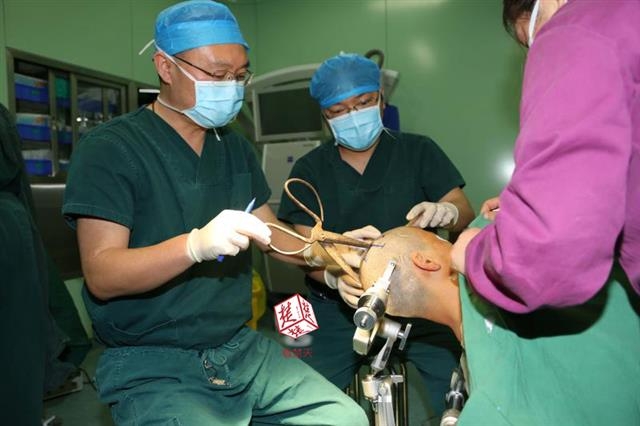 醫(yī)生檢查發(fā)現(xiàn),剪刀刀尖斜嵌在沈某顱骨里,離腦髓只有兩三毫米。所幸是斜著插進去,如果是垂直刺入,很有可能造成癱瘓。最終經過手術,剪刀被取出,沈某目前仍在ICU進一步觀察。
