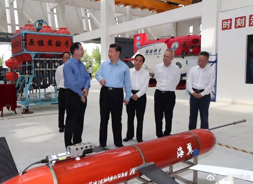 12日下午,習(xí)近平總書記來到位于海南三亞的中國(guó)科學(xué)院深??茖W(xué)與工程研究所,仔細(xì)察看“海翼”號(hào)深?;铏C(jī)、“天涯”深淵著陸器等設(shè)備,并同“深海勇士”號(hào)載人潛水器設(shè)計(jì)師和深潛團(tuán)隊(duì)親切交談。