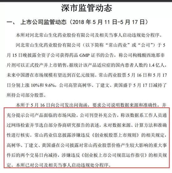 公眾質(zhì)疑也得到了有關(guān)方面的呼應(yīng)。據(jù)報道,5月18日晚間,深交所官方微信發(fā)布公告稱,深交所已經(jīng)對“常山藥業(yè)”及相關(guān)當(dāng)事人啟動違規(guī)處分程序。