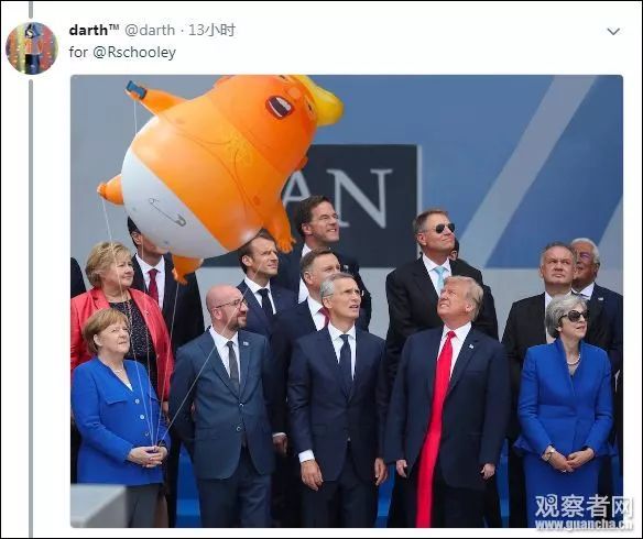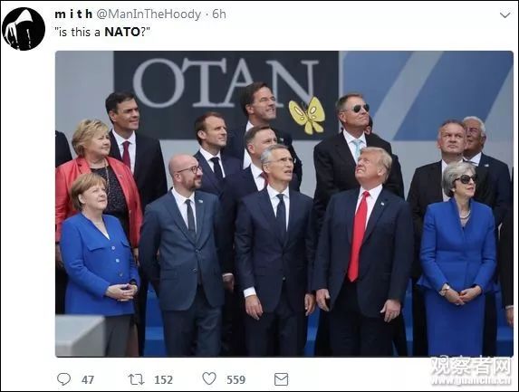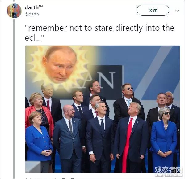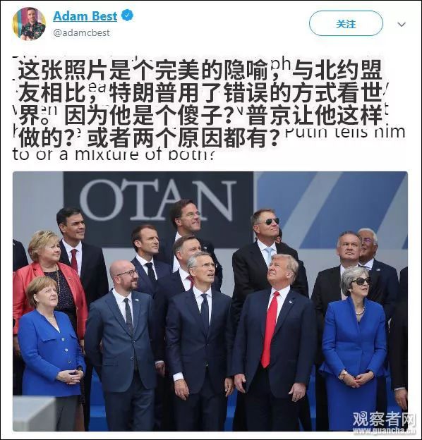 該照片目前已經(jīng)被西方各大主流媒體使用,作為其報(bào)道北約峰會(huì)的頭圖,比如美國《新聞周刊》、《時(shí)代》等。