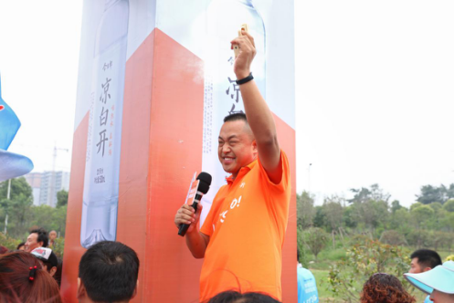看,今麥郎飲品有限公司漯河大區(qū)營銷部長李平激昂講話,帥氣揮槍,令下開走