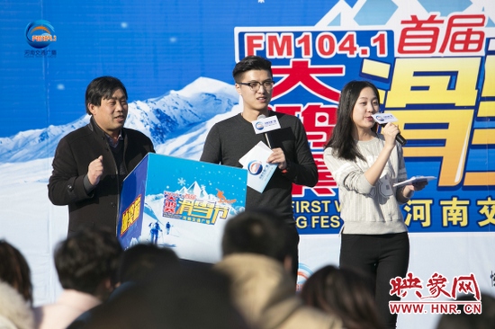 準備工作已經就緒,車友們已經按捺不住要滑雪的心情了,在滑雪正式開始之前,1041《MORE FUN 音樂》主持人王哲和《馬路歡樂派—早間》主持人彎彎,禹州市大鴻寨臥佛山旅游開發(fā)有限公司總經理王鋒偉先生也來給大家加油打氣了。