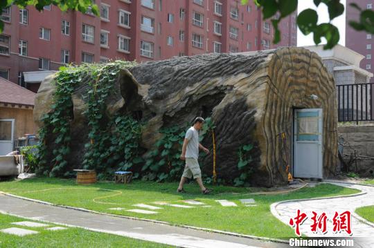 吉林省長(zhǎng)春市近來(lái)出現(xiàn)一所外形酷似樹墩的公共廁所,引來(lái)很多市民的關(guān)注。這座公廁乍一看去像是一尊巨大的樹干,長(zhǎng)約十米左右,直徑約四米。張瑤 攝