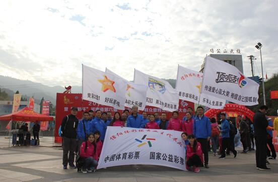 在眾多代表隊中有一只團隊頗具特色,那就是由80人組成的“信陽體彩優(yōu)秀業(yè)主代表隊”,身著藍色或紅色運動裝,高舉印有體彩各類玩法和公益宣傳的6面大旗,在人群中極為亮眼,展示了體彩人的良好形象。為了讓廣大群眾了解體彩公益,體彩信陽分中心還在開幕儀式現(xiàn)場設(shè)置了大型噴繪展板,展示了近15年來信陽體彩造福老區(qū)、推動我市體育事業(yè)和公益事業(yè)前行所做出的貢獻,以及體彩公益金的主要用途,詮釋了購買體育彩票的社會價值。