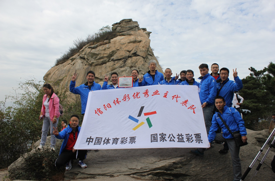 在五公里蜿蜒曲折的登山步道上,信陽體彩代表隊各成員互幫互助,你拉我一把,我扶你一步,“責任 誠信 團結(jié) 創(chuàng)新”的體彩精神在這一刻得到了最好的體現(xiàn)。在山頂報曉峰廣場,大家不知疲倦為群眾介紹體彩玩法,成為了一個個流動的宣傳站。