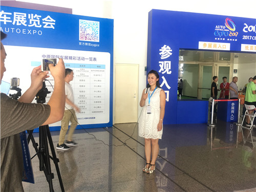 2017第六屆中原國(guó)際汽車(chē)展覽會(huì)開(kāi)幕首日,映象主播十三妹已經(jīng)達(dá)到現(xiàn)場(chǎng)。