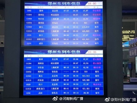 【暴雪導(dǎo)致部分列車停運(yùn)】1月4日,記者從鄭州東站了解到,受冰雪影響,途徑鄭州東站的14趟列車停運(yùn),具體車次如下(以下列車均為往返車次):