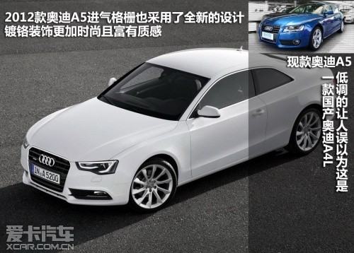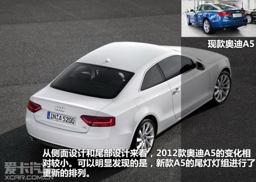 2012款?yuàn)W迪A5屬于中期改款車型,在外觀、內(nèi)飾、動(dòng)力和底盤上都有較為明顯的變化。除了A5和其高性能版S5的稱謂,新車主要細(xì)分為雙門Coupe版、Sportback版以及Cabriolet敞篷版。