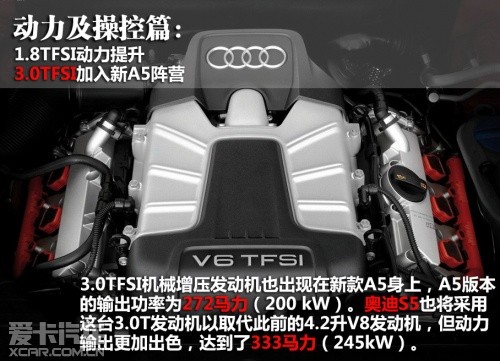 動(dòng)力及操控篇:1.8TFSI動(dòng)力提升 3.0TFSI加入新A5陣營(yíng) 底盤重新調(diào)教