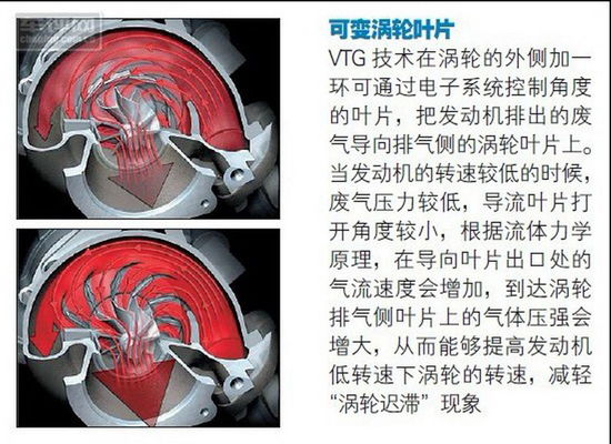 由于受到柴油發(fā)動機轉(zhuǎn)速的限制,想在加速過程中享受持續(xù)的加速感似乎很難,但油門踏板的響應(yīng)性以及低轉(zhuǎn)速下所提供的扭力的確值得稱道。在渦輪增壓器中使用了可變渦輪葉片(VTG)技術(shù),有效地減輕了渦輪遲滯現(xiàn)象。尤其是在擁堵的城市間停停走走,顯得底氣十足。