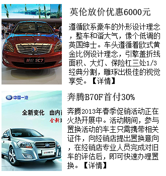 導語映象網(wǎng)汽車頻道,為了給廣大愛車人士提供更多的車市信息,創(chuàng)辦了車市行情欄目,欄目提供中原車市各大4S店的打折信息、活動等信息,為您購車、選車、試車做向導。