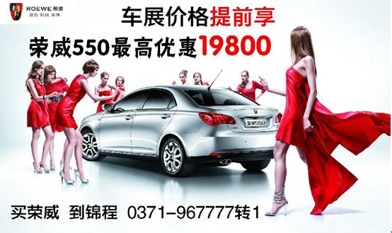 近日,編者從河南錦程榮威了解到,榮威車展價(jià)格提前享,榮威550最高直降1.98萬(wàn)元。購(gòu)榮威車的朋友們不用再擠車展,在優(yōu)雅的環(huán)境中提前享受有車生活,河南錦程榮威為廣大車友朋友們提供最實(shí)惠最保障的購(gòu)車政策。買榮威汽車,到河南錦程看看再?zèng)Q定,搶購(gòu)熱線:0371—967777轉(zhuǎn)1.