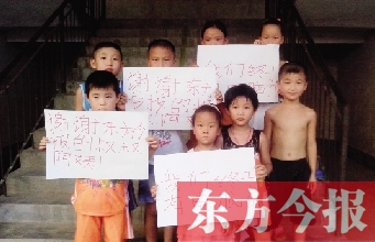 昨晚,已經返回當地的趙會勇傳來圖片,畫面上,幾個孩子舉起寫著“感謝東方今報的叔叔阿姨”的紙片。字寫得歪歪扭扭,但,看到的人都覺得很溫暖。DF