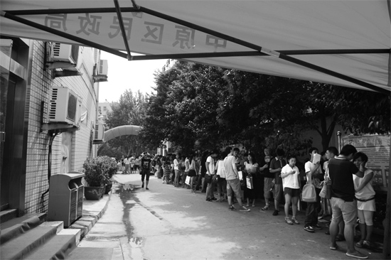 昨日是中國傳統(tǒng)“七夕”節(jié),新人們冒酷暑排隊領(lǐng)“紅本本”。