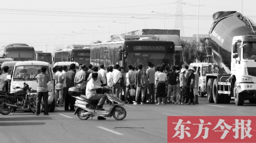 班車被堵在四港聯(lián)動大道