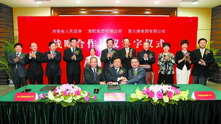 河南日報(bào)??谟?(記者楊 凌)河南開放合作再譜新篇章。3月31日下午,河南省人民政府、海航集團(tuán)有限公司、富士康集團(tuán)有限公司戰(zhàn)略合作協(xié)議簽字儀式在??谂e行。