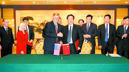 郭庚茂 邁克·畢比分別代表雙方在協(xié)議書上簽字