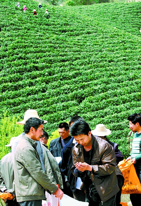 圖 浉河區(qū)浉河港鄉(xiāng)是信陽毛尖的主產(chǎn)區(qū),這里山上采茶,山下就有很多客商現(xiàn)場進(jìn)行鮮葉交易。