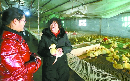 村里的奶牛場和養(yǎng)鴨場是吳樹蘭最掛心的地方,她每天都要去看看那里的生產(chǎn)情況,也經(jīng)常動手幫忙。記者 郭 宇 攝