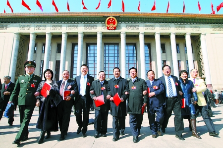 3月14日上午,參加十一屆全國(guó)人大五次會(huì)議閉幕會(huì)的河南代表團(tuán)代表手挽著手走出人民大會(huì)堂。在10多天里,河南代表團(tuán)的160余位代表認(rèn)真履職,充分展示了駐豫全國(guó)人大代表的精神風(fēng)貌。記者 李建峰 郭 宇 攝
