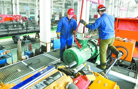 3月17日,南陽(yáng)二機(jī)集團(tuán)出口烏茲別克斯坦的2000米拖掛鉆機(jī)正在加緊組裝中。目前,這家企業(yè)已和烏茲別克斯坦確立了在當(dāng)?shù)睾献鹘◤S的意向,今年將有20臺(tái)套鉆機(jī)在該國(guó)本地生產(chǎn)。 王天定 攝