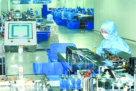 3月17日,工人們?cè)卩P縣醫(yī)療器械孵化園內(nèi)工作。該孵化園區(qū)以圣光集團(tuán)為依托,吸引了20家注射器、手術(shù)包等醫(yī)療器械生產(chǎn)研發(fā)企業(yè)入駐,年創(chuàng)利稅9000萬(wàn)元,并為當(dāng)?shù)靥峁┝?000多個(gè)就業(yè)崗位。 王堯 攝