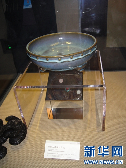 鈞官窯遺址博物館位于禹州市鈞官窯路北段,是該市籌資1.2億元,經(jīng)過(guò)三年時(shí)間精心打造而成的全國(guó)唯一一座鈞瓷專(zhuān)題博物館。走進(jìn)宋鈞官窯遺址博物館,一件件造型典雅、端莊古樸、釉色瑩潤(rùn)、五彩繽紛吸引了記者的眼球,館內(nèi)共有1500多件熠熠生輝的鈞瓷藏品, 在二樓鈞官窯瓷器展示廳,一件鈞窯天藍(lán)釉鼓釘洗的瓷器吸引了很多人關(guān)注,據(jù)館長(zhǎng)介紹,這件瓷器所有權(quán)不屬于博物館,而是他們從國(guó)外借來(lái)的。過(guò)去由于多種原因,很多精美的瓷器都流失國(guó)外,有些回流到了國(guó)內(nèi),而有些只能暫時(shí)借過(guò)來(lái),才能讓更多人一睹它的風(fēng)采。