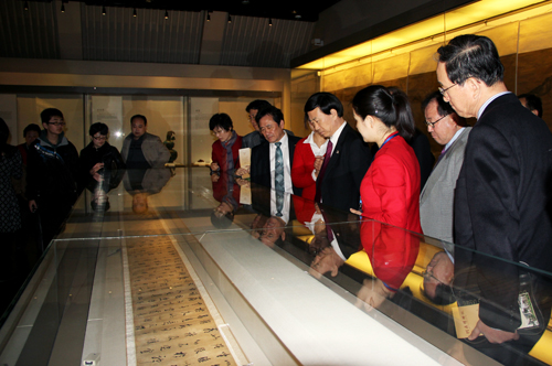 韓國文化交流團成員認(rèn)真觀看展品