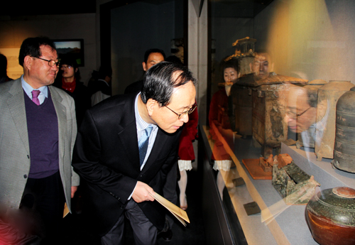 張文軍院長代表河南博物院對韓國文化交流團表示歡迎,希望在今年中韓友好交流年之后還能經(jīng)常見到他們。趙南浩先生代表韓國人民由衷歡迎張文軍等中國朋友盡早訪問韓國。62歲的許由先生表示中韓兩國一衣帶水,文化一脈相承,祝愿中韓兩國的友誼萬古長青。最后他風(fēng)趣地說:爭取在66歲時訪華次數(shù)達(dá)到100次這個吉祥圓滿的數(shù)字。