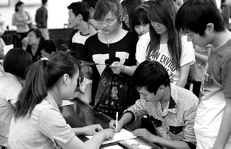 5月8日,在2012年民營(yíng)企業(yè)招聘周活動(dòng)武陟縣分會(huì)場(chǎng),一位求職者在填寫(xiě)求職登記表。本次招聘周活動(dòng)該縣共有31家民營(yíng)企業(yè)參加,涉及工種116個(gè),提供就業(yè)崗位1439個(gè)。馮小敏 張新草 攝