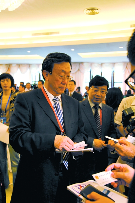 論壇開始前,郭庚茂一走進會場,就被眼尖的代表們認出,不斷有人主動去交換名片。論壇剛一結束,臺上嘉賓和臺下聽眾“呼啦”一下都擁到郭庚茂身邊,有的要名片,有的要合影,有的要預約采訪。郭庚茂微笑著一一滿足大家的要求。