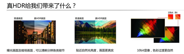 MU9600攜帶了許多高端技術(shù),包括3D顯示、曲面屏幕等,但要說最值得夸耀的無疑是現(xiàn)在最熱門的HDR技術(shù)。2015末至今HDR已經(jīng)成為許多智能電視的標(biāo)配技術(shù),從效果上來說HDR能讓畫面的整體均勻性更好,因此HDR技術(shù)也被譽(yù)為是繼4K后最重要的畫質(zhì)技術(shù)。