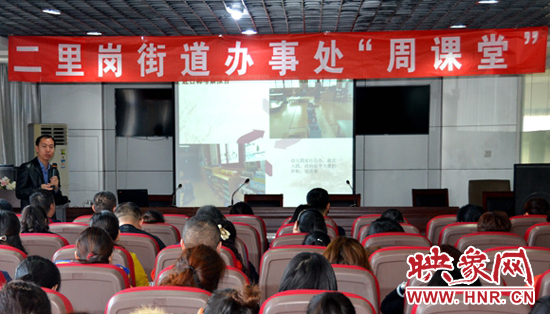二里崗辦事處把開設“周課堂、月講堂”作為文明創(chuàng)建和干部隊伍教育的重要載體,旨在提升黨員干部群眾業(yè)務素質,增強為民服務水平?!爸苷n堂”以內部交流、業(yè)務學習為主,由街道領導班子成員、中層干部、業(yè)務骨干輪流授課?!霸轮v堂”邀請專家學者、“兩代表一委員”等專業(yè)人士就經濟、文化、健康、教育等各領域開展講座,提升黨員干部群眾的整體素質和文化素養(yǎng)。