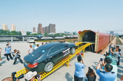 昨日14時(shí),鄭州北站內(nèi),首次迎來一批特殊的貨品——私家車。各式各樣的小轎車、SUV被裝上火車,與它們的主人暫時(shí)分離,直奔目的地重慶。