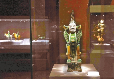 唐三彩因創(chuàng)燒于唐代,且釉色多以黃、綠、白三色為主色而得名。唐三彩以釉彩斑斕、色澤艷麗而著稱,體現(xiàn)了唐代盛世激揚(yáng)的時(shí)代精神,是我國陶瓷發(fā)展史上的重要一環(huán),也影響了中國后世低溫釉陶及鄰近諸國的陶瓷工藝發(fā)展。(記者游曉鵬文李康平偉攝影)
