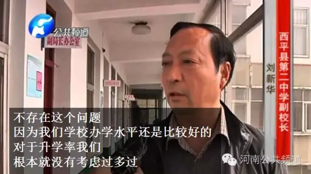為了升學(xué)率、為了利益,不惜出賣學(xué)生嗎?為了證實(shí)家長(zhǎng)的說(shuō)法,記者又回到了西平縣二中,可是卻被學(xué)校保安拒之門(mén)外,隨后記者撥打了西平二中副校長(zhǎng)劉新華的電話。