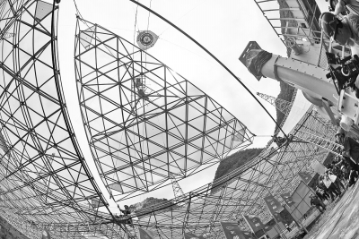 7月3日,F(xiàn)AST工程的最后一塊反射面板正在吊裝。新華社發(fā)
