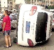 5日17時許,交警二大隊民警介紹,保時捷司機是一名50歲左右的女子,鞏義人,車是新車。該女子的駕駛證顯示她有11年駕齡,但她介紹自己駕車時間并不多?!芭緳C把車開出地下停車場后,在停車場門口錯把油門當(dāng)剎車了,結(jié)果車飛速穿過花壇,因為路面不平,車彈跳力增大,跨過花壇,推著轎車前行后,保時捷竟爬上了白色轎車,重心不穩(wěn)跌了下來,造成側(cè)翻。把一名52歲女子撞成雙腿骨折,不過人暫時沒有生命危險?!笔掳l(fā)后造成包括保時捷在內(nèi)的5輛車受損。目前事故正在進一步處理中。線索提供 王新偉(稿費100元)