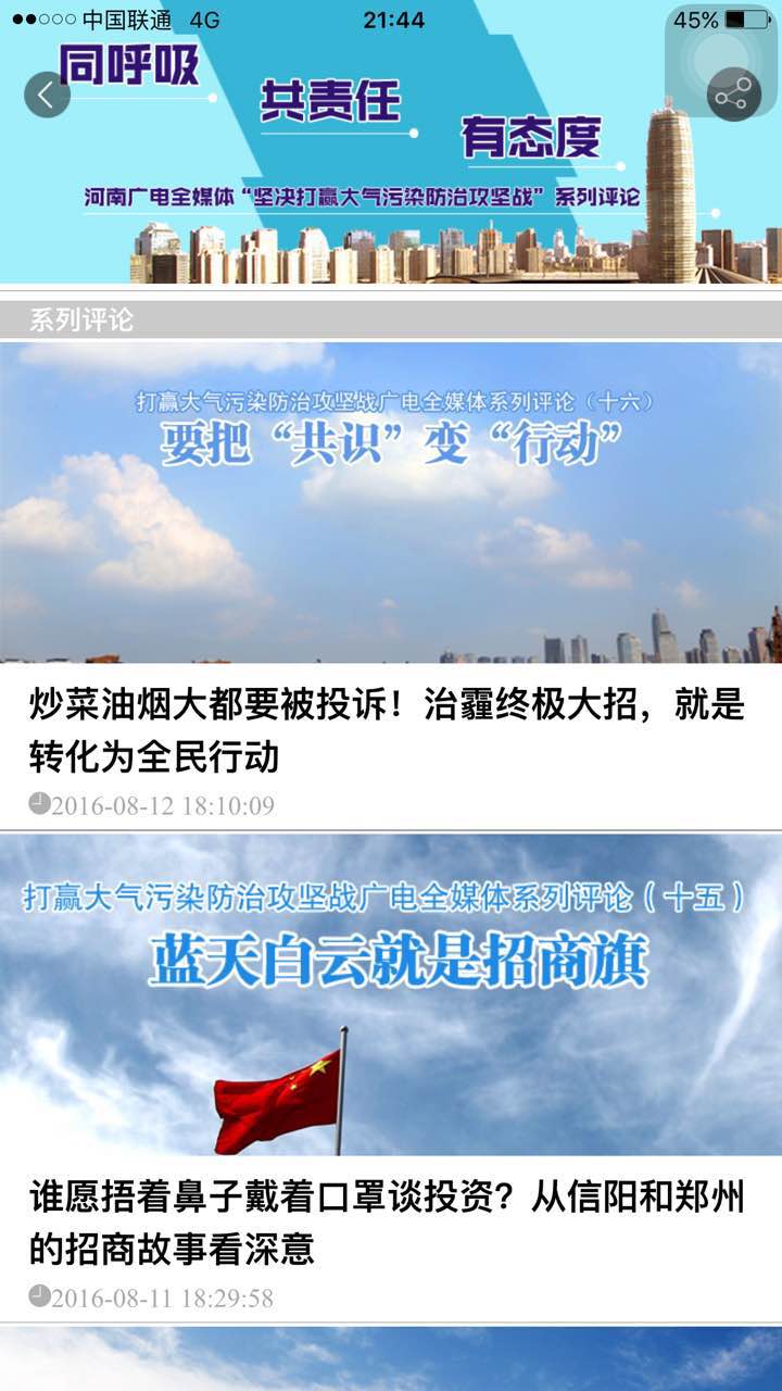 從7月份開始,河南開始打響大氣污染防治攻堅戰(zhàn),河南廣電全媒體推出“堅決打贏大氣污染防治攻堅戰(zhàn)”系列評論,到8月13日已經(jīng)推出了16篇。連日來,系列評論在社會上引起了方方面面的關注,產(chǎn)生了巨大影響。8月14日晚上,央視《新聞聯(lián)播》,也關注了河南大氣污染防治攻堅戰(zhàn)。