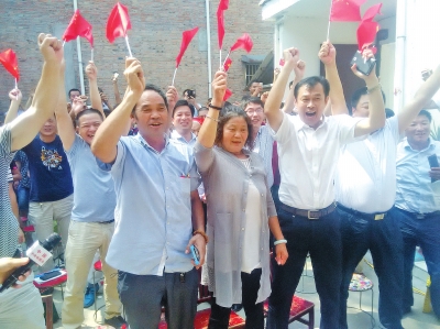 鄉(xiāng)親們?nèi)挤疟夼冢瑧c祝女排奪冠。